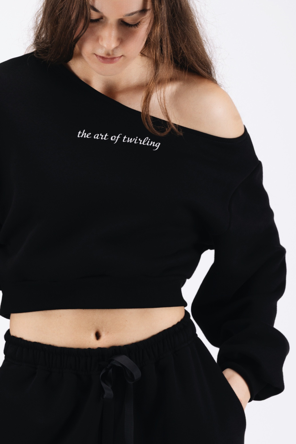 Táto off-shoulder crop mikina je perfektná na tréning, tanec či twirling – ideálna na rozcvičku, zahriatie aj cestu do telocvične. Ženský strih s odhalenými ramenami a príjemný materiál ti dodajú štýl aj pohodlie, či už trénuješ, relaxuješ doma alebo tráviš čas s priateľmi.