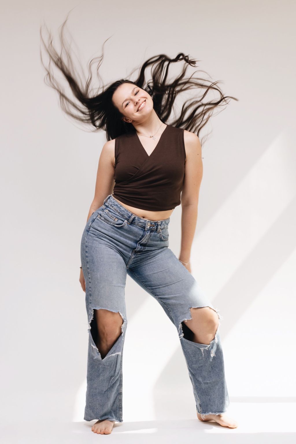 Zavinovací top je presne to, čo hľadáš, keď chceš vyzerať skvele bez toho, aby si sa presnažila. Skrížený predný diel ti dá pekný výstrih, zdôrazní postavu a padne dobre na všetky tvary. Jemný, ženský a pritom bez námahy cool. Od tréningu až po párty, stačí len vymeniť topánky.